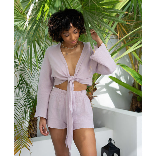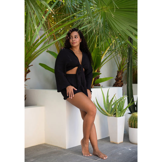 "The Hozhoogi shorts and wrap set epitomizes effortless style and comfort. Crafted with care and attention to detail, this ensemble blends traditional craftsmanship with modern flair. Perfect for any casual outing or relaxed day, it promises a harmonious balance of versatility and cultural elegance, ensuring you look and feel your best wherever you go."